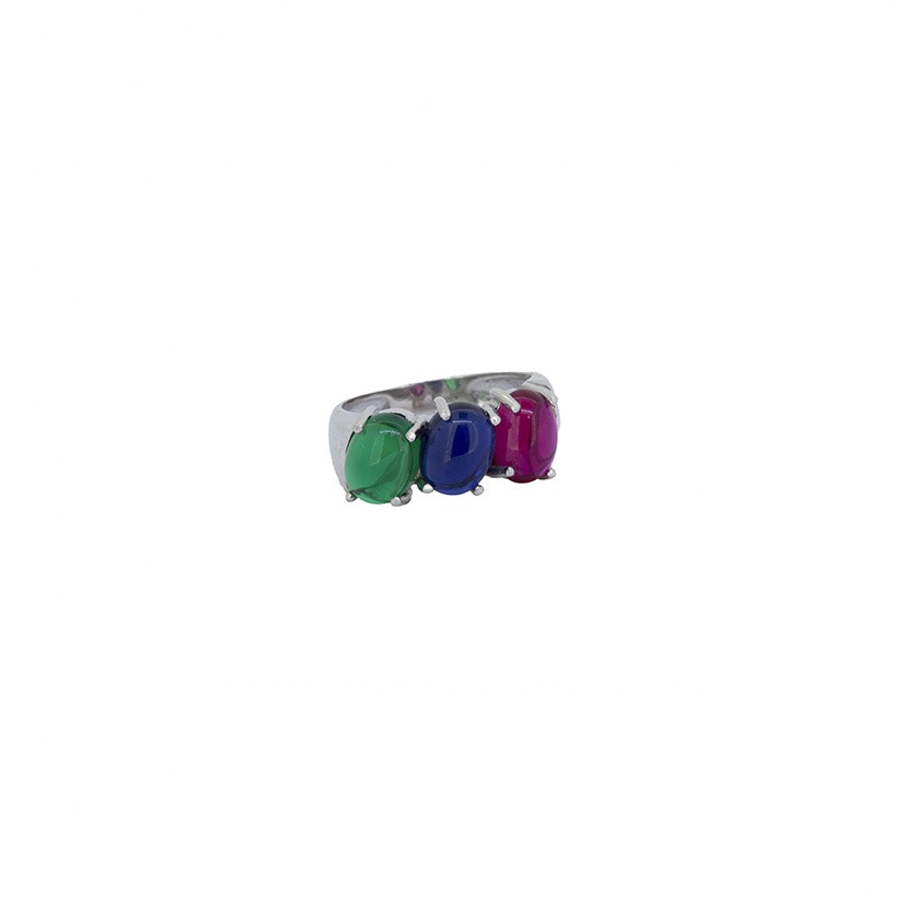 Anillo de Plata de Ley 925 con Tres Piedras de Colores